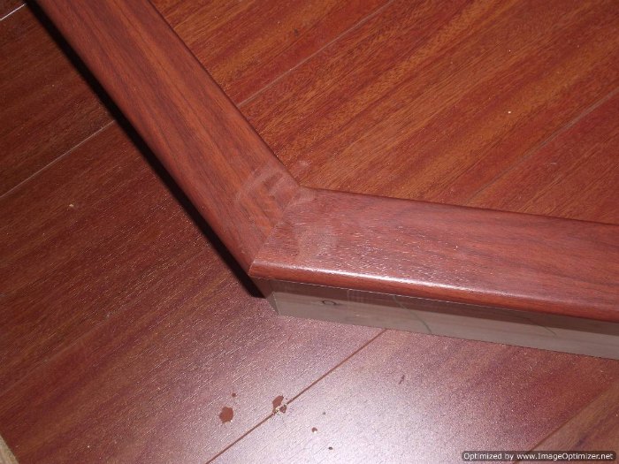This can present problems that will need to be addressed when installing laminate on angled stairs. The vertical parts of these stairs were not plumb ( straight up and down) so when attaching the risers to these areas the risers want to lean in or out at the top or bottom.