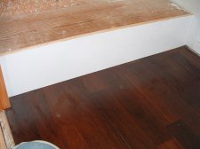 This is the finished riser after I cut it on the table saw. The only alternative to scribing the riser is to use quarter round to hide the gap. I don't think quarter round looks very good on stairs.