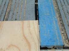Here is the reason the riser needs to be scribed. In this photo the landing here is not flat, it has a dip as you can see in the middle and the ends are touching. Scribing the riser is a lot less work than rebuilding the landing to make it flat.